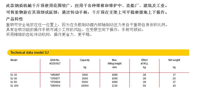 此款鋼質機械千斤頂使用范圍較廣,應用于各種維修和維護中、造船廠、建筑及工業(yè)。