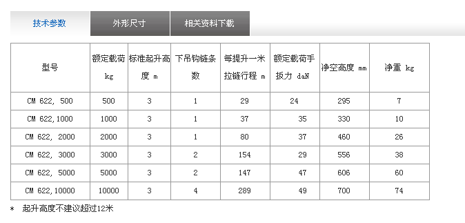 - 標(biāo)配手拉鏈長度比提升高度短 0.6 米(例如 3 米提升高度的葫蘆,手拉鏈長為 2.4 米。
