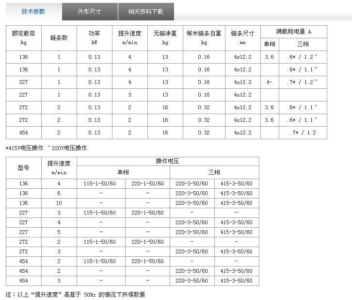 提升速度:2~10米/分(在50Hz情況下)